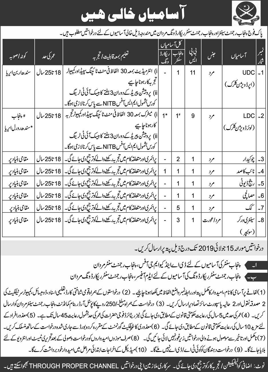 Jobs in Pak Army Punjab Regiment