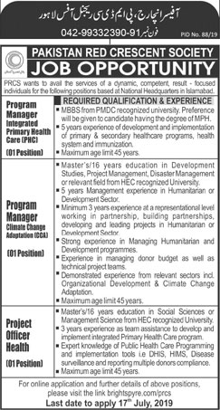 Jobs in Pakistan Red Crescent