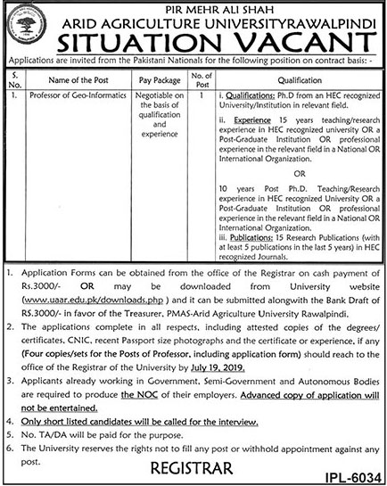 Jobs in PMAS Arid Agriculture University 07 July 2019