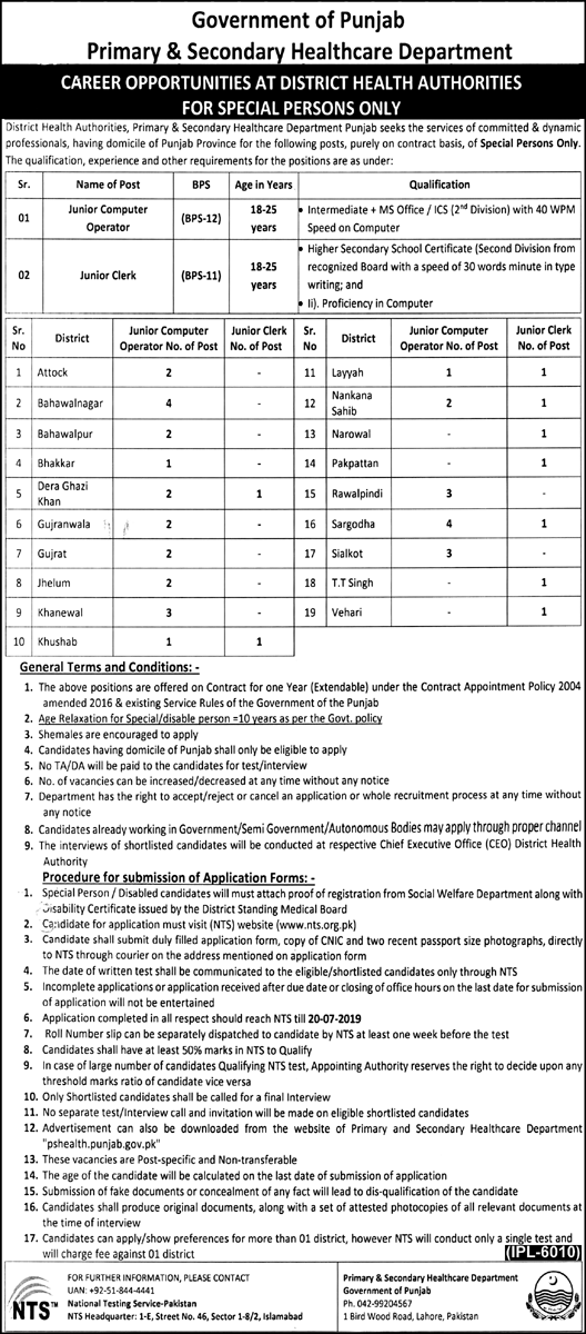 Jobs in Primary and Secondary Healthcare Department Punjab