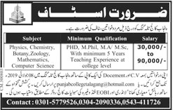 Jobs in Punjab Group of Colleges Talagang 30 June 2019