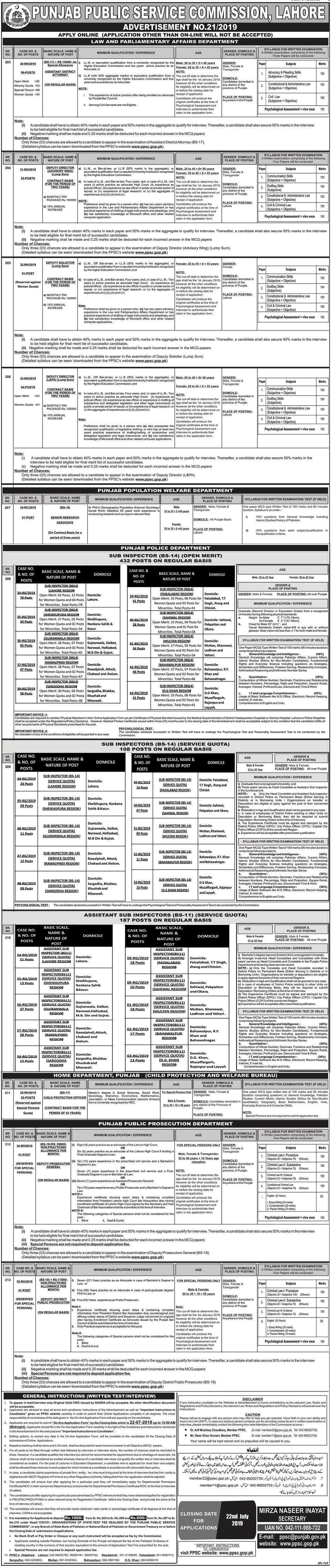 Jobs in Punjab Public Service Commission Lahore