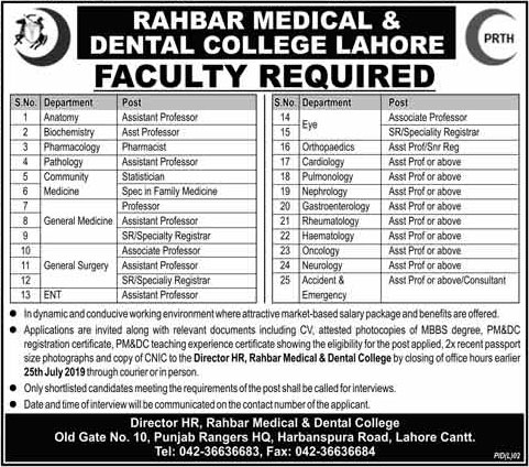 Jobs in Rahbar Medical & Dental College Lahore