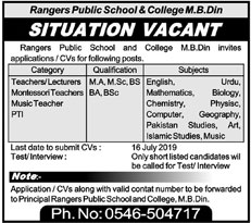Jobs in Ranger Public School & College July 2019
