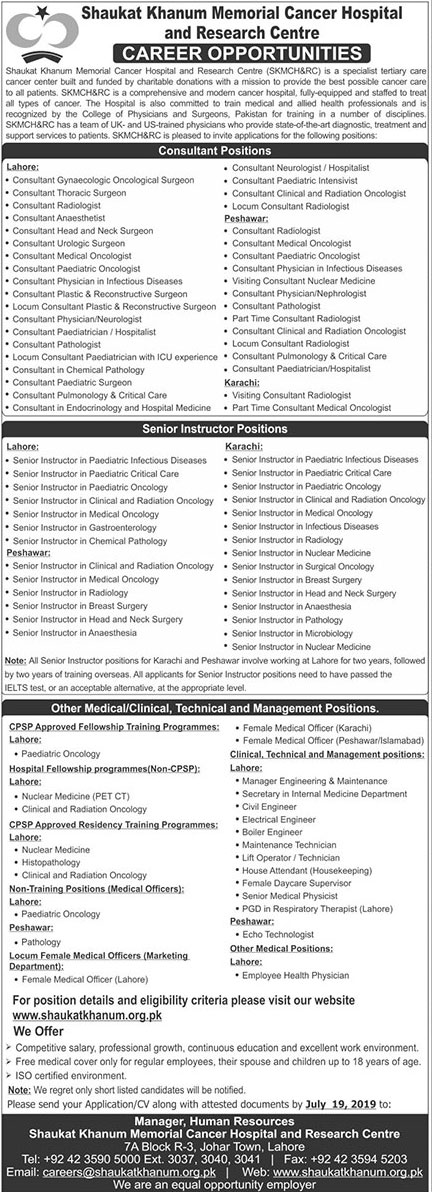 Jobs in Shaukat Khanum Memorial Cancer Hosital