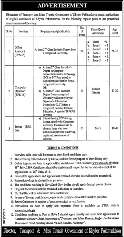 Jobs in Transport & Mass Transit Department 28 June 2019