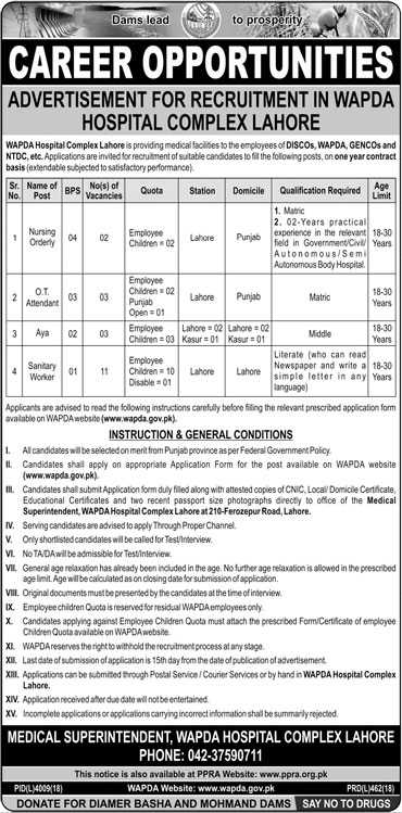 Jobs in WAPDA Hospital Complex Lahore