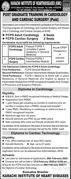 Jobs in Karachi Institute of Heart Diseases Positions Vacant