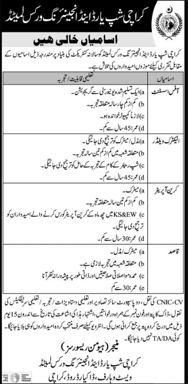 Jobs in Karachi Ship Yad and Engineering Works Limited Positions Vacant