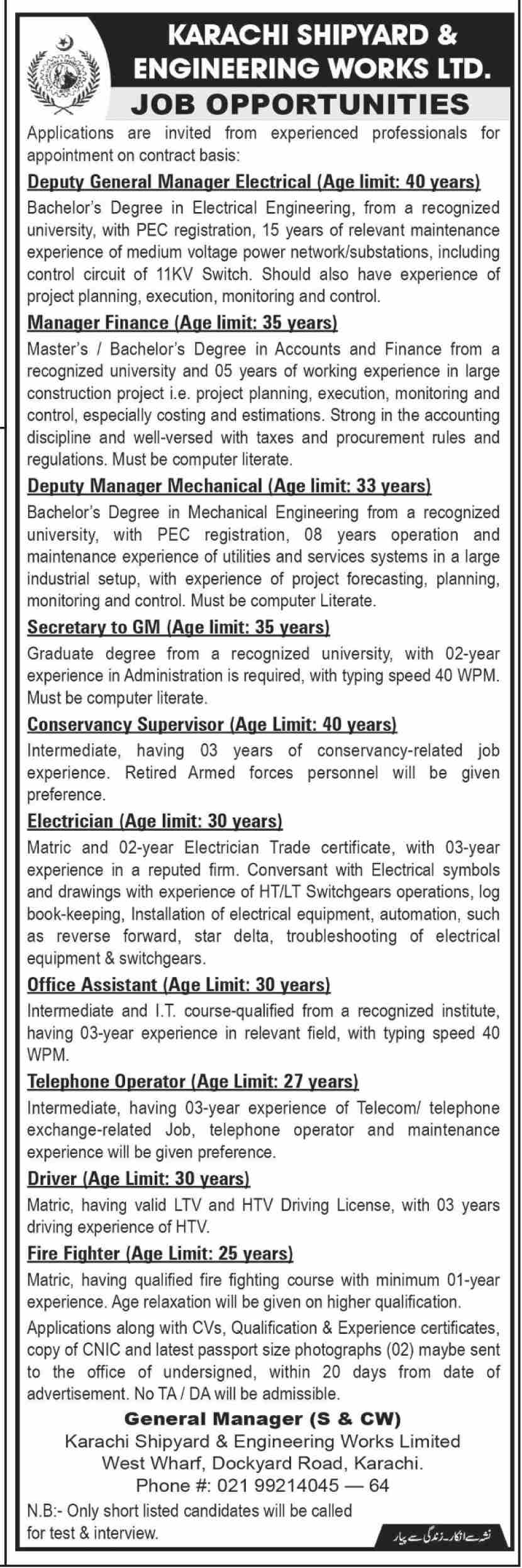 More jobs in Karachi Shipyard & Engineering Works Ltd.