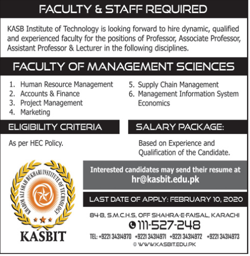 Khadim Ali Shah Bukhari Institute of Technology Faculty Staff Required