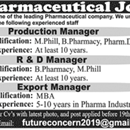 Jobs in Leading Pharmaceutical company Positions Vacant