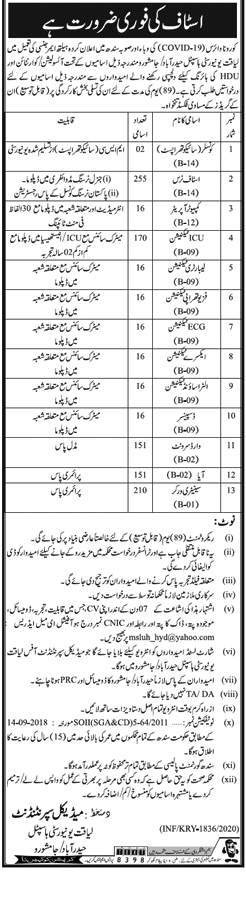 Jobs in Liquat University Hospital Hyderabad / Jamashoro Urgenty Staff Required