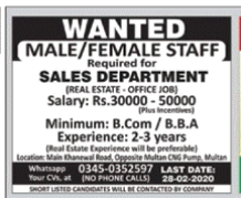 Jobs in Local Company in Multan Salesmen Staff Required