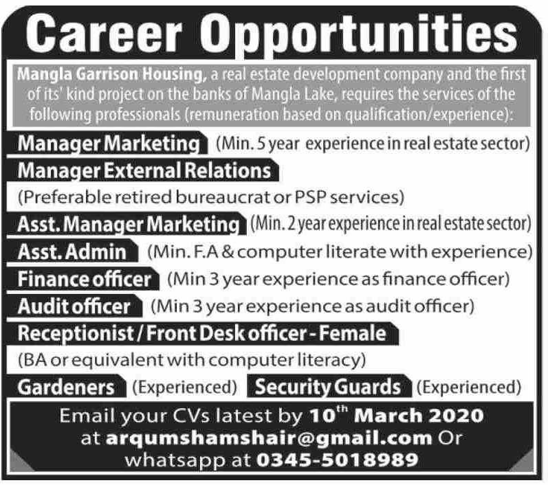 Jobs in Mangla Garrison Housing Society Career Opportunity