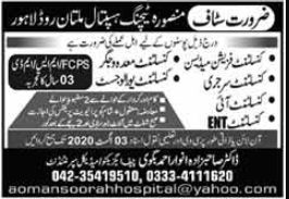 Jobs in Mansoora Teaching Hospital Lahore Staff Required