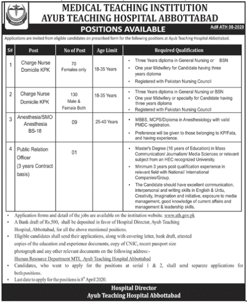 Jobs in Medical Teaching Institution Abbottabad Positions Vacant