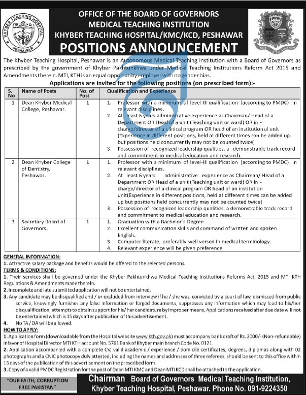 Jobs in Medical Teaching Institution Peshawar Positions Vacant