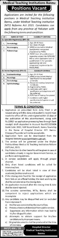 Jobs in Medical Teaching Institutions Bannu Positions Vacant