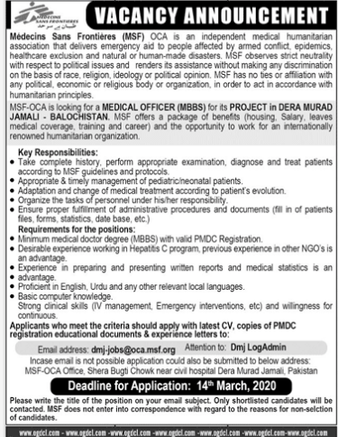 Jobs in Medicine Sans Frontiers Vacancy Announcement