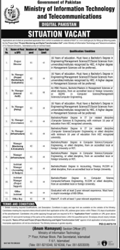 Ministry of Information Technology and Telecommunication job vacant in different kind of IT and didital Pakistan