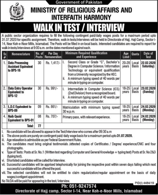 Jobs in Ministry of Religious Affairs Positions Vacant