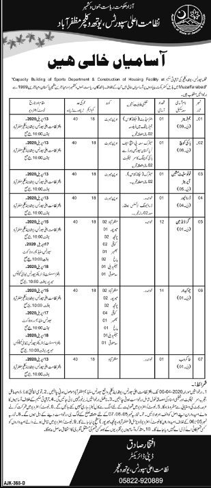Jobs in Ministry of Sports, Youth & Culture AJ&K Positions Vacant