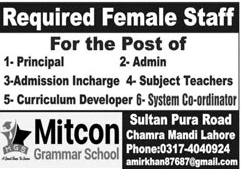 Jobs in Mitcon Grammar School Staff Required