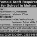 Jobs in Multan High School Female Faculty Required