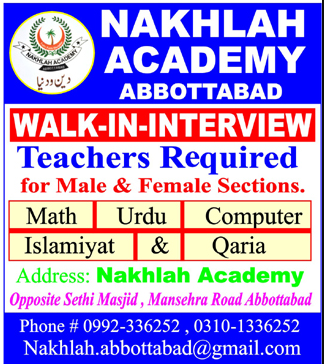 Jobs in Nakhlah Academy Abbottabad Staff Required