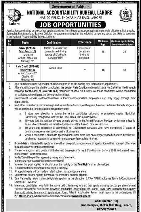 Jobs in National Accountability Bureau Lahore Career Opportunity