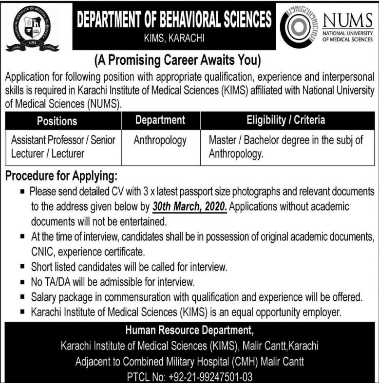 Jobs in National University of Medical Sciences Karachi Positions Vacant