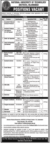 Jobs in National University of Technology Islamabad Positions Vacant