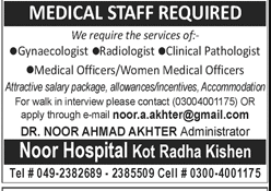 Jobs in Noor Hospital Kot Radha Kishen Position Vacant