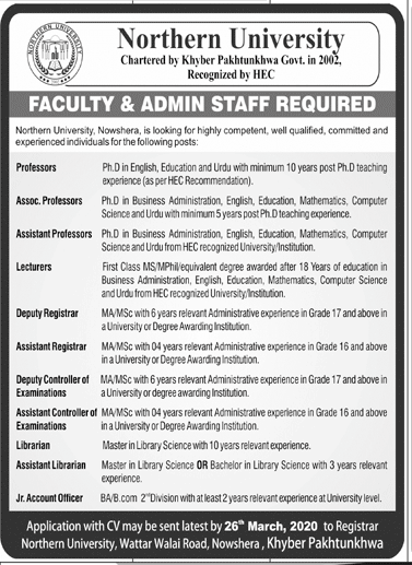 Jobs in Northern University Faculty and Admin Staff Required
