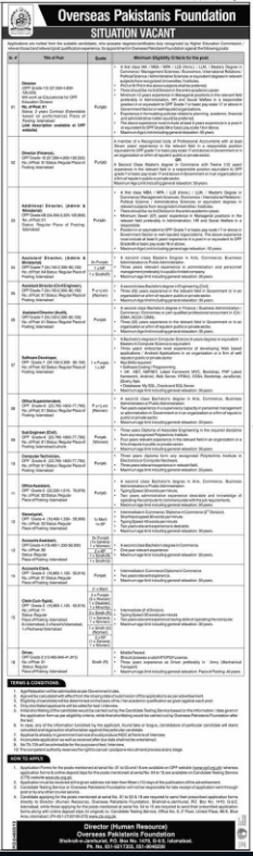 Jobs in Overseas Pakistanis Foundation Situations Vacant