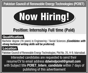 Jobs in Pakistan Council of Renewable Energy Technologies Positions Vacant
