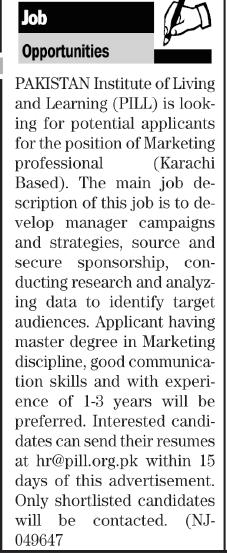 Jobs in Pakistan Institute of Living and Learning Positions Vacant