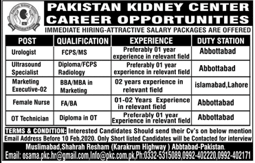 Pakistan Kidney Center Career Opportunity