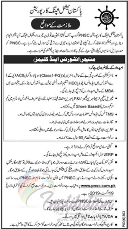 Pakistan National Shipping Corporation Manager Insurance and Claims Career (jobs) Opportunities