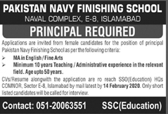 Job in Pakistan Navy Finishing School Principal Required