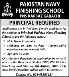 Jobs in Pakistan Navy Finishing School Karachi Principal Required