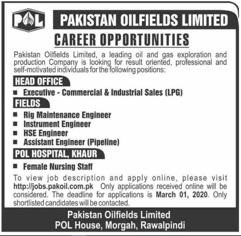 Jobs in Pakistan Oilfields Limited Career Opportunity