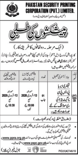 Pakistan security printing corporation Job Vacant