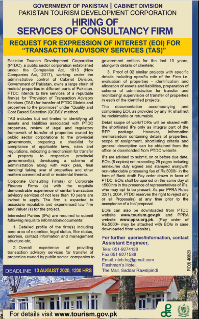 Job in Pakistan Tourism Development Corporation Position Vacant