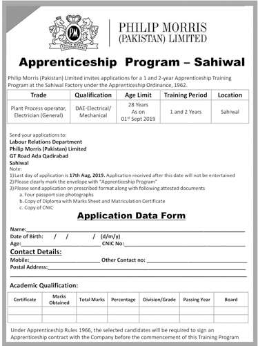 Philip Morris (Pakistan) Limited Apprenticeship Program Jobs (Career) Opportunity