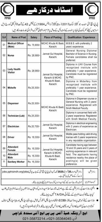 PPHI Sindh Medical Staff Required