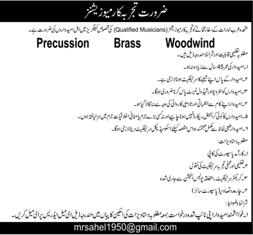 Precussion Brass Woodewind Musicians Required