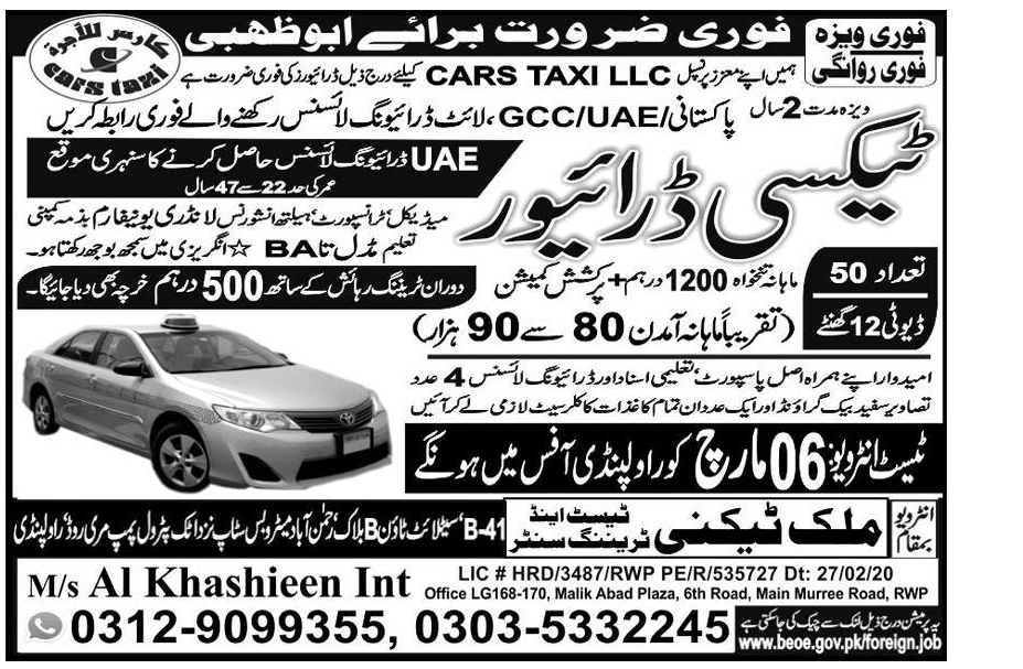 Private Jobs in Abu Dhabi Taxi Drivers Required