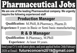 Jobs in Private Pharma Company Positions Vacant